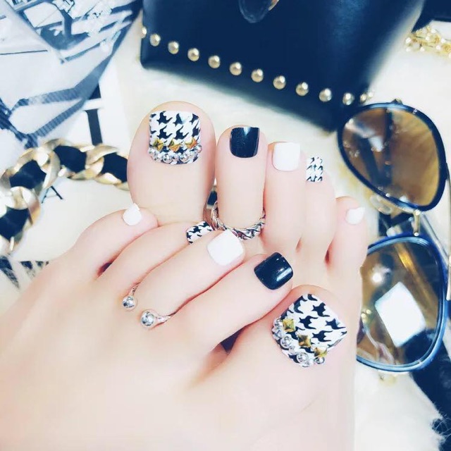24pcs Black And White Products Toenail False Toe Nails