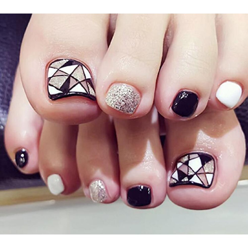 60 Stylish Black And White Nail Art Designs For Toe Nails